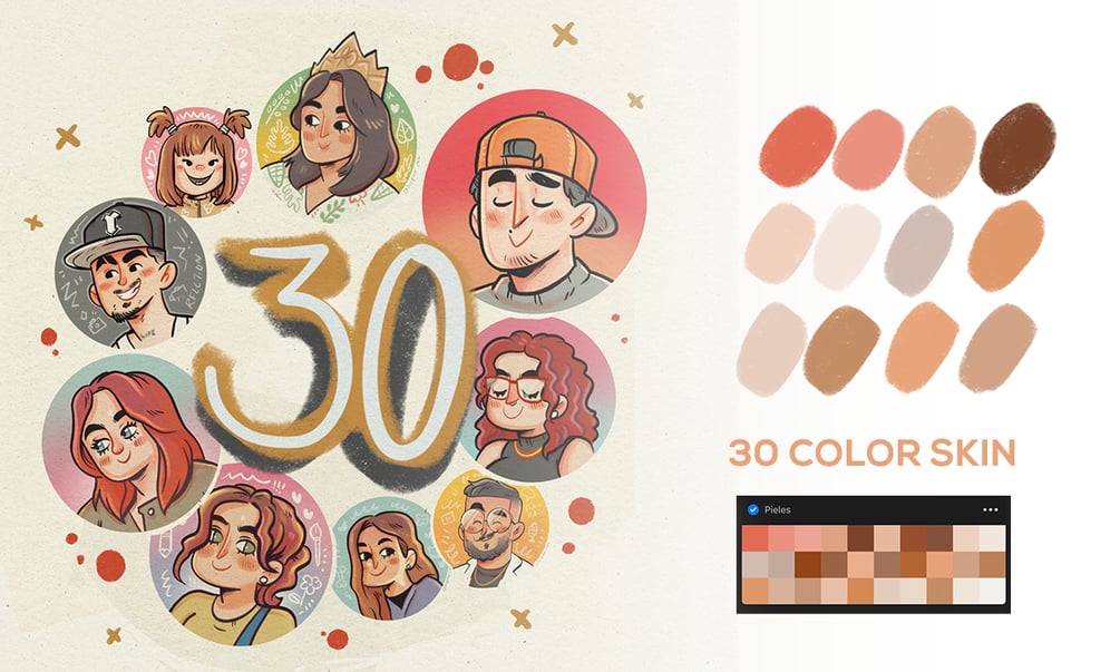 Aquí les dejo mi selección de colores para pieles. 30 colores de pieles Compact y cards para Procreate> Bájalas y añádelas a tu flujo de trabajo.